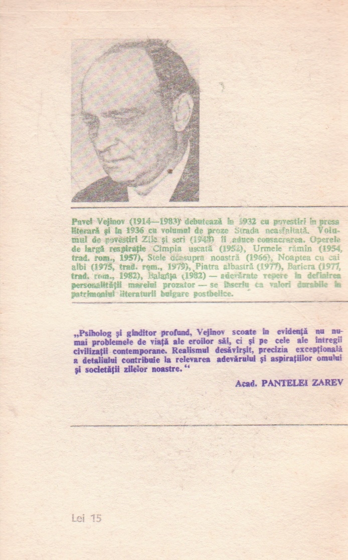 Comandă online Balanta la 10,50 lei scrisă de Pavel Vejinov TIBERIU IOVAN, tiparită la editura Univers face parte din colecția Romanul Secolului XX. Livrare din stoc cu plata ramburs sau online cu cardul.