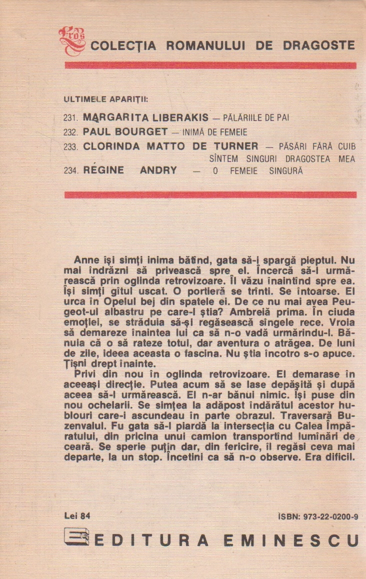 Comandă online O fata singura. Zapezile verii la 13,60 lei scrisă de Regine Andry, tiparită la editura Eminescu face parte din colecția Romanul de dragoste în anul 1991. Livrare din stoc cu plata ramburs sau online cu cardul.