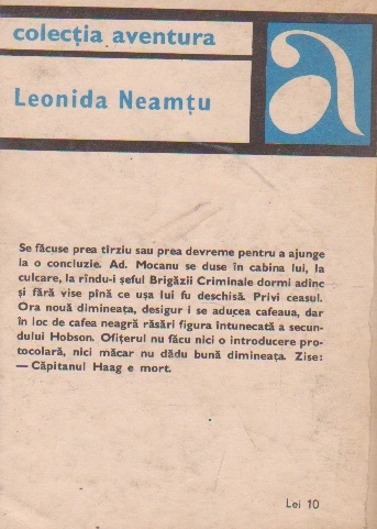 Comandă online cartea "Balada capitanului Haag" la 10,50 lei scrisă de Leonida Neamtu, tiparită la editura Albatros face parte din colecția Aventura în anul 1984. Livrare din stoc cu plata ramburs sau online cu cardul.