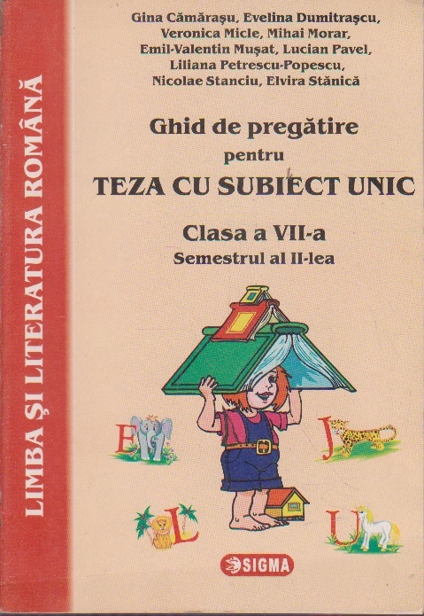 Comandă online Ghid de pregatire pentru teza cu subiect unic. Clasa a VII-a, Semestrul al II-lea - LIMBA SI LITERATURA ROMANA la 10,50 lei isbn 9789736495090 scrisă de Veronica Micle , Gina Camarasu, tiparită la editura Sigma în anul 2008. Livrare din stoc cu plata ramburs sau online cu cardul.