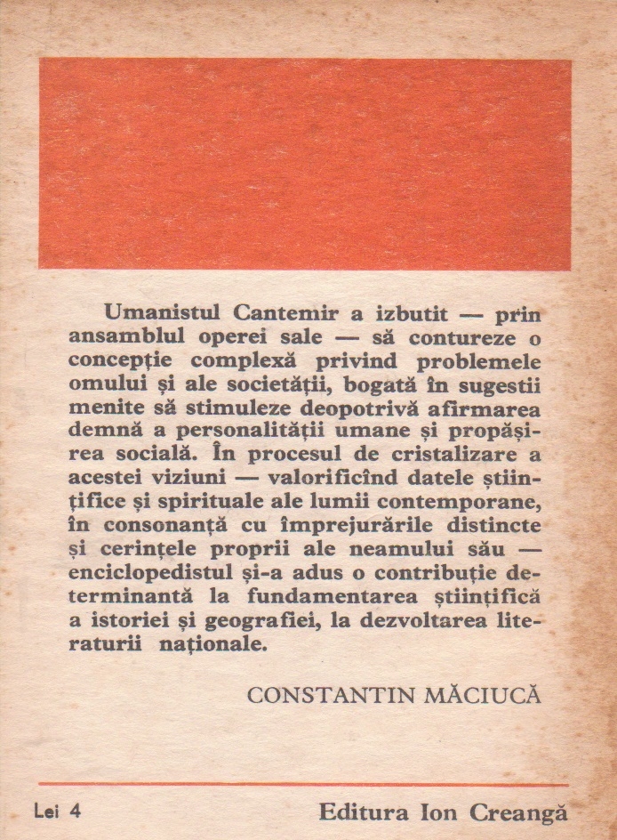 Comandă online Descrierea Moldovei la 13,60 lei scrisă de Dimitrie Cantemir, tiparită la editura Ion Creanga face parte din colecția Biblioteca Scolarului în anul 1978. Livrare din stoc cu plata ramburs sau online cu cardul.