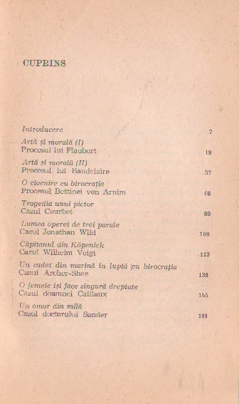 Procesele lui Flaubert, Baudelaire, Bettinei von Arnim, Courbet, Jonathan Wild, Wilhelm Voigt.... etc